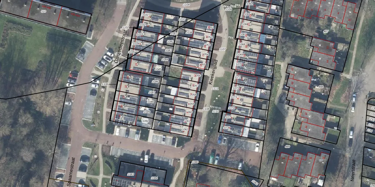 Gebruik de zoekbalk of klik op een perceel voor informatie over de adressen binnen dit perceel.