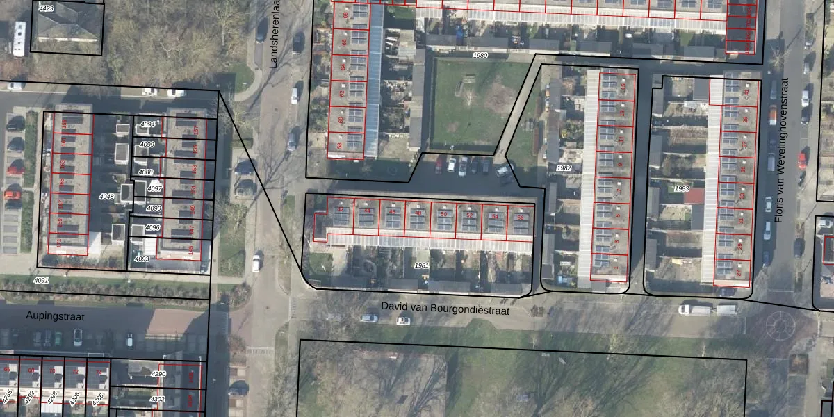Het perceel waarop Landsherenlaan 48 staat heeft een oppervlakte van 1256 m². Dit is een zeer groot perceel. De perceeloppervlakte wordt geregistreerd door het Kadaster. Gedetailleerde informatie over de maten van dit perceel kunt u vinden in het rapport Kadastrale kaart met maatvoering van Landsherenlaan 48.