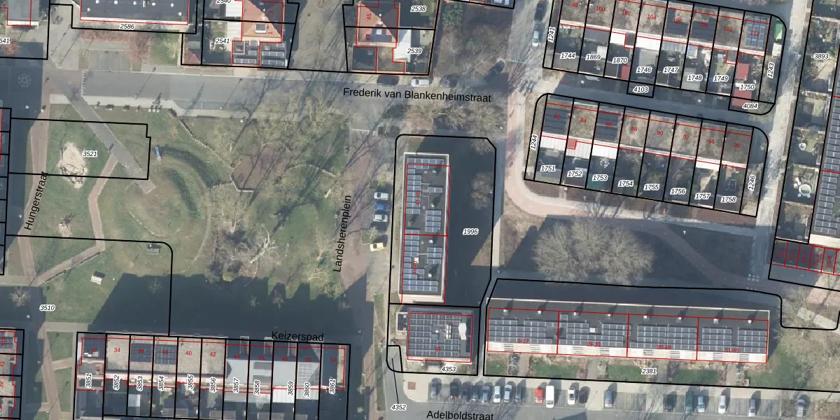Het perceel waarop Landsherenplein 42 staat heeft een oppervlakte van 954 m². Dit is een groot perceel. De perceeloppervlakte wordt geregistreerd door het Kadaster. Gedetailleerde informatie over de maten van dit perceel kunt u vinden in het rapport Kadastrale kaart met maatvoering van Landsherenplein 42.