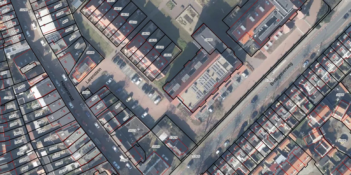 Het perceel waarop Larenstein 19 staat heeft een oppervlakte van 857 m². Dit is een groot perceel. De perceeloppervlakte wordt geregistreerd door het Kadaster. Gedetailleerde informatie over de maten van dit perceel kunt u vinden in het rapport Kadastrale kaart met maatvoering van Larenstein 19.