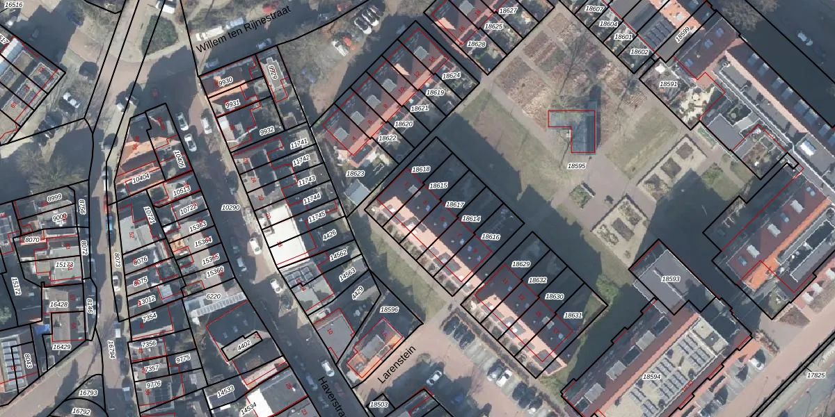 Gebruik de zoekbalk of klik op een perceel voor informatie over de adressen binnen dit perceel.