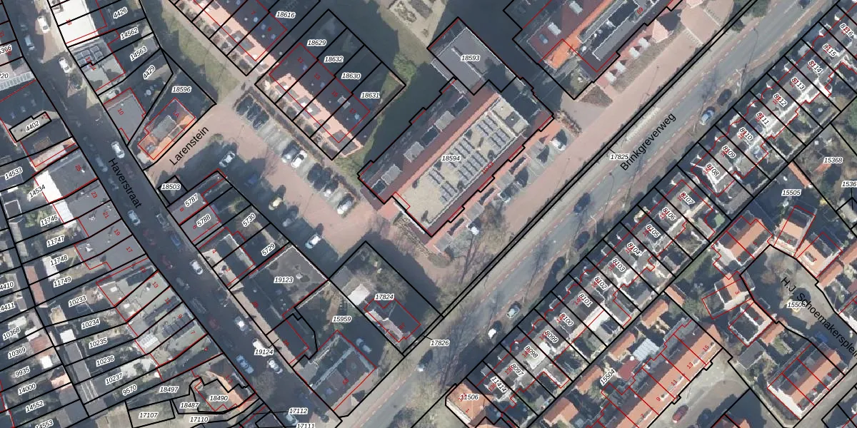 Larenstein 43 is gelegen op kadastraal perceel DVT00B18594. Deze kadastrale aanduiding is uniek en wordt gebruikt door het Kadaster om eigendomsrechten en andere zakelijke rechten vast te leggen. Het perceel maakt onderdeel uit van de kadastrale gemeente Deventer.