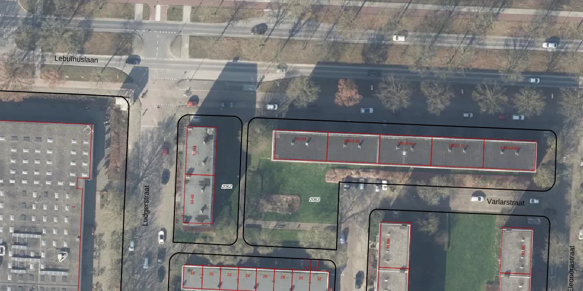 Het perceel waarop Lebuïnuslaan 14 staat heeft een oppervlakte van 2964 m². Dit is een zeer groot perceel. De perceeloppervlakte wordt geregistreerd door het Kadaster. Gedetailleerde informatie over de maten van dit perceel kunt u vinden in het rapport Kadastrale kaart met maatvoering van Lebuïnuslaan 14.