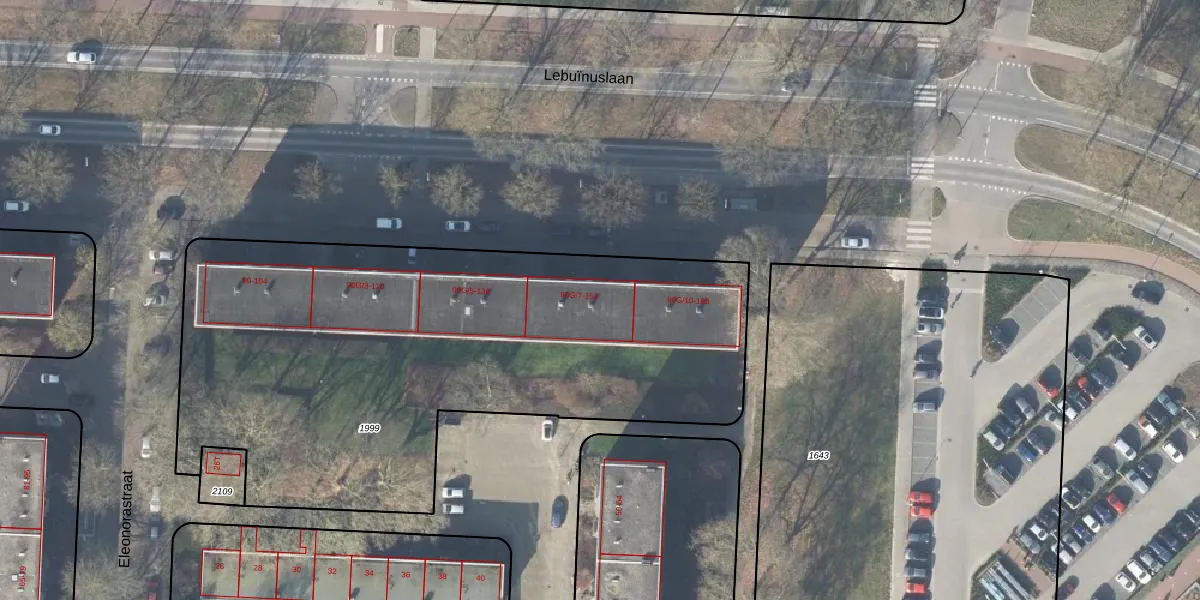 Het perceel waarop Lebuïnuslaan 150 staat heeft een oppervlakte van 3173 m². Dit is een zeer groot perceel. De perceeloppervlakte wordt geregistreerd door het Kadaster. Gedetailleerde informatie over de maten van dit perceel kunt u vinden in het rapport Kadastrale kaart met maatvoering van Lebuïnuslaan 150.