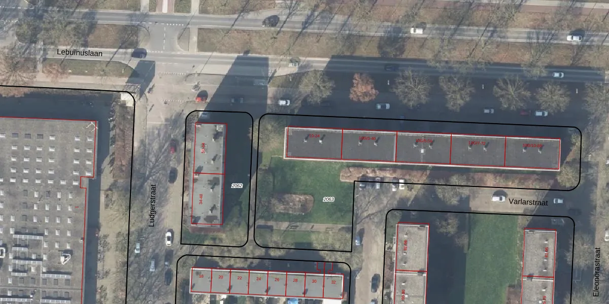 Lebuïnuslaan 16 is gelegen op kadastraal perceel DVT00F2063. Deze kadastrale aanduiding is uniek en wordt gebruikt door het Kadaster om eigendomsrechten en andere zakelijke rechten vast te leggen. Het perceel maakt onderdeel uit van de kadastrale gemeente Deventer.
