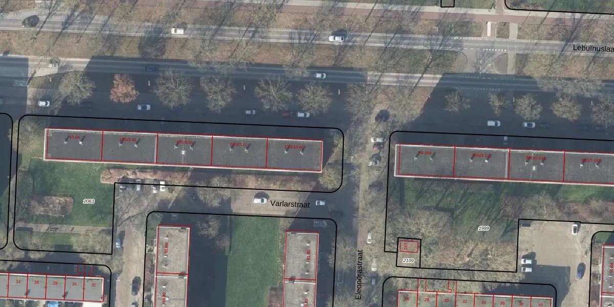 Het perceel waarop Lebuïnuslaan 84 staat heeft een oppervlakte van 2964 m². Dit is een zeer groot perceel. De perceeloppervlakte wordt geregistreerd door het Kadaster. Gedetailleerde informatie over de maten van dit perceel kunt u vinden in het rapport Kadastrale kaart met maatvoering van Lebuïnuslaan 84.