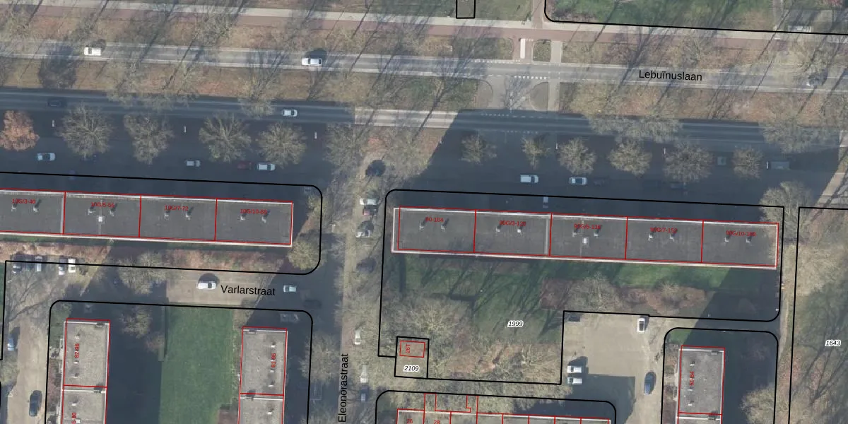 Het perceel waarop Lebuïnuslaan 90 staat heeft een oppervlakte van 3173 m². Dit is een zeer groot perceel. De perceeloppervlakte wordt geregistreerd door het Kadaster. Gedetailleerde informatie over de maten van dit perceel kunt u vinden in het rapport Kadastrale kaart met maatvoering van Lebuïnuslaan 90.
