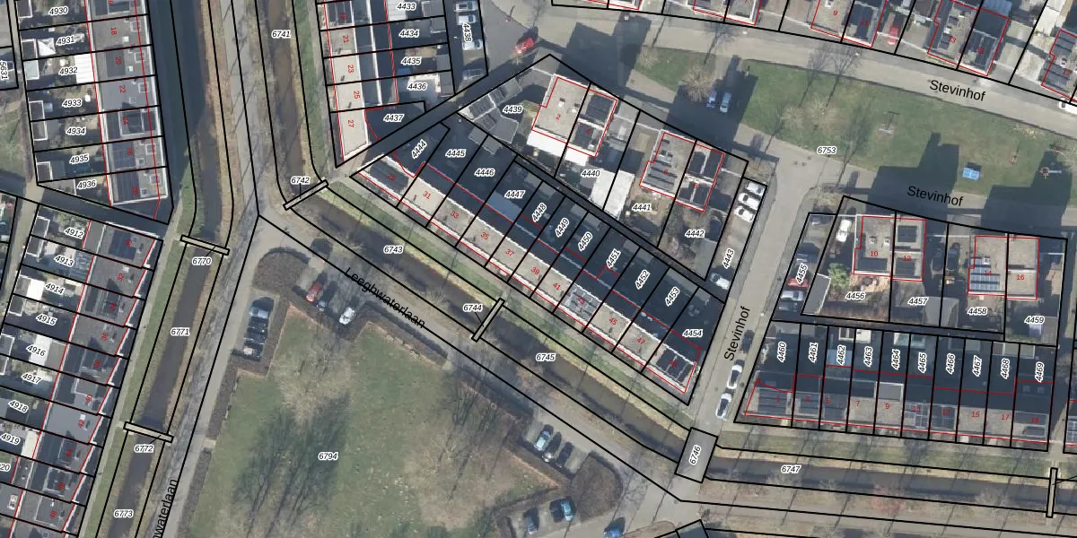 Gebruik de zoekbalk of klik op een perceel voor informatie over de adressen binnen dit perceel.