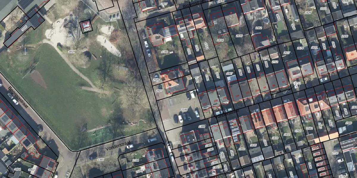 Gebruik de zoekbalk of klik op een perceel voor informatie over de adressen binnen dit perceel.