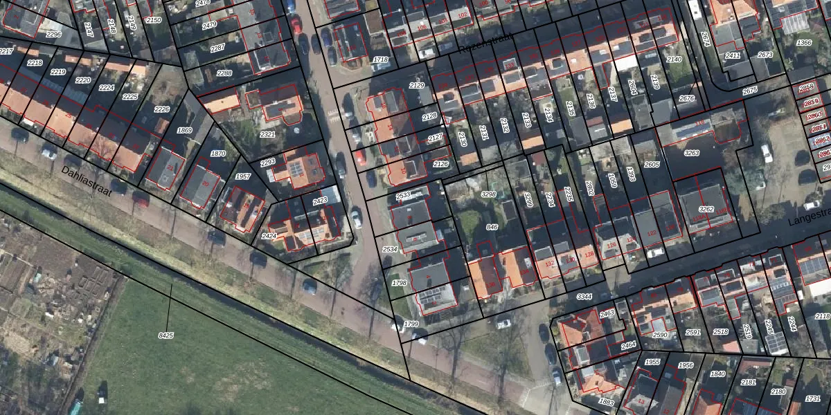 Gebruik de zoekbalk of klik op een perceel voor informatie over de adressen binnen dit perceel.