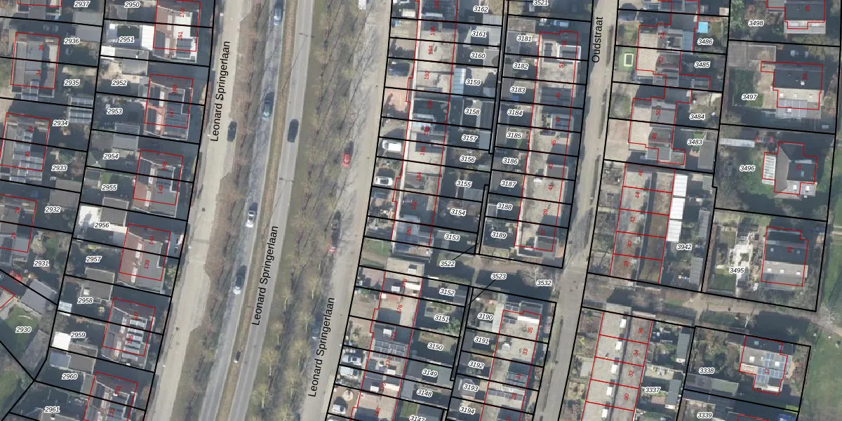 Het perceel waarop Leonard Springerlaan 182 staat heeft een oppervlakte van 193 m². Dit is een middelgroot perceel. De perceeloppervlakte wordt geregistreerd door het Kadaster. Gedetailleerde informatie over de maten van dit perceel kunt u vinden in het rapport Kadastrale kaart met maatvoering van Leonard Springerlaan 182.
