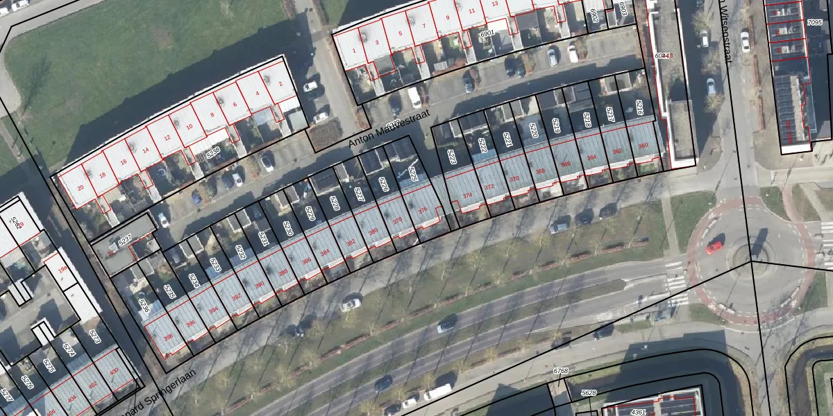 Het perceel waarop Leonard Springerlaan 376 staat heeft een oppervlakte van 190 m². Dit is een middelgroot perceel. De perceeloppervlakte wordt geregistreerd door het Kadaster. Gedetailleerde informatie over de maten van dit perceel kunt u vinden in het rapport Kadastrale kaart met maatvoering van Leonard Springerlaan 376.