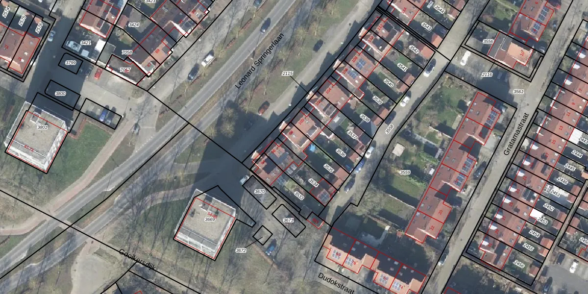 Gebruik de zoekbalk of klik op een perceel voor informatie over de adressen binnen dit perceel.