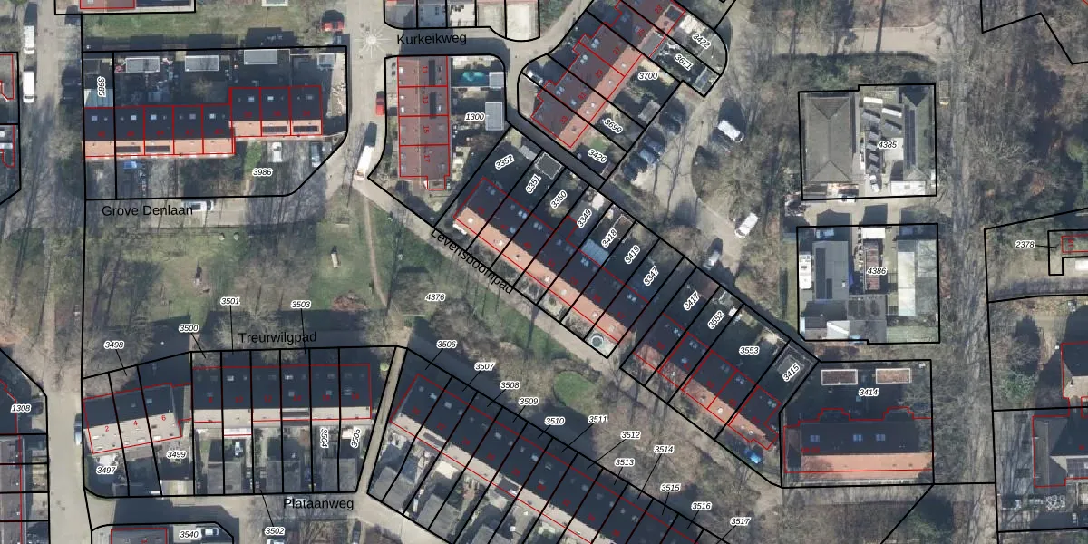 Gebruik de zoekbalk of klik op een perceel voor informatie over de adressen binnen dit perceel.