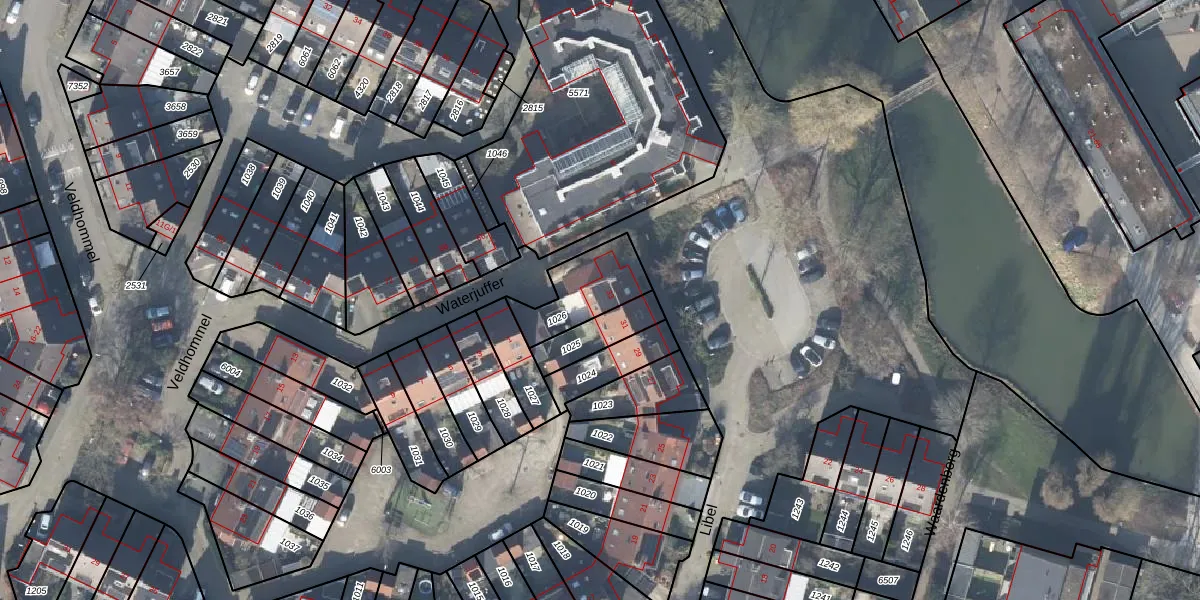Het perceel waarop Libel 33 staat heeft een oppervlakte van 210 m². Dit is een middelgroot perceel. De perceeloppervlakte wordt geregistreerd door het Kadaster. Gedetailleerde informatie over de maten van dit perceel kunt u vinden in het rapport Kadastrale kaart met maatvoering van Libel 33.