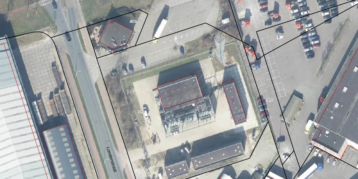 Het perceel waarop Londenstraat 1-T staat heeft een oppervlakte van 6117 m². Dit is een zeer groot perceel. De perceeloppervlakte wordt geregistreerd door het Kadaster. Gedetailleerde informatie over de maten van dit perceel kunt u vinden in het rapport Kadastrale kaart met maatvoering van Londenstraat 1-T.