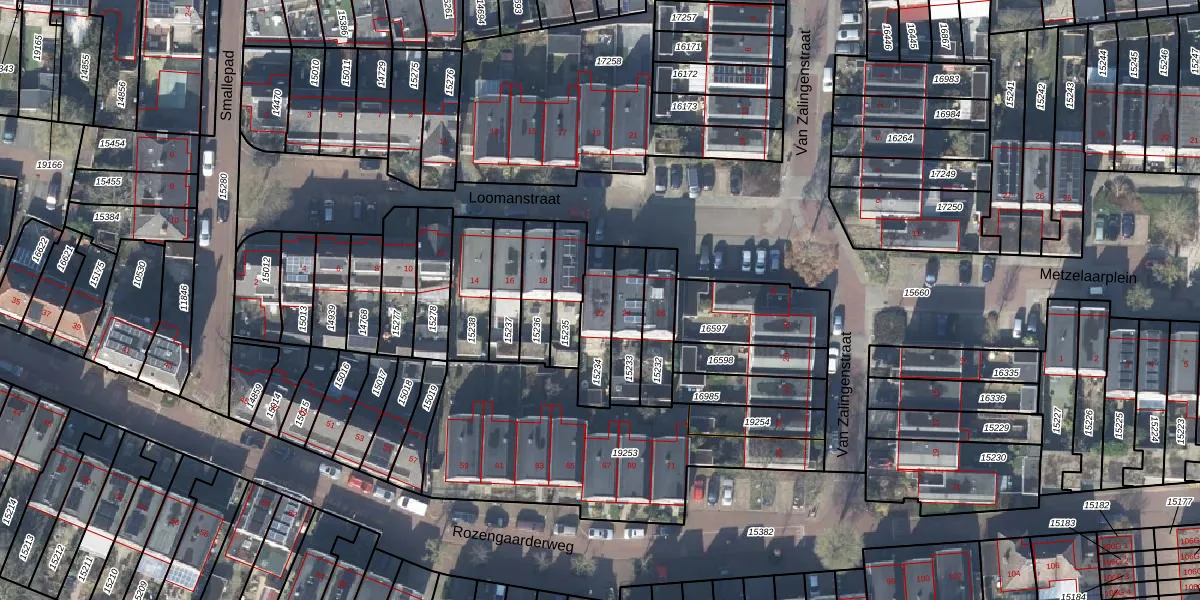 Gebruik de zoekbalk of klik op een perceel voor informatie over de adressen binnen dit perceel.