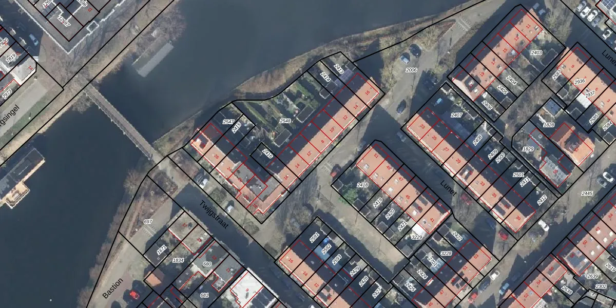 Het perceel waarop Lunet 12 staat heeft een oppervlakte van 1067 m². Dit is een zeer groot perceel. De perceeloppervlakte wordt geregistreerd door het Kadaster. Gedetailleerde informatie over de maten van dit perceel kunt u vinden in het rapport Kadastrale kaart met maatvoering van Lunet 12.