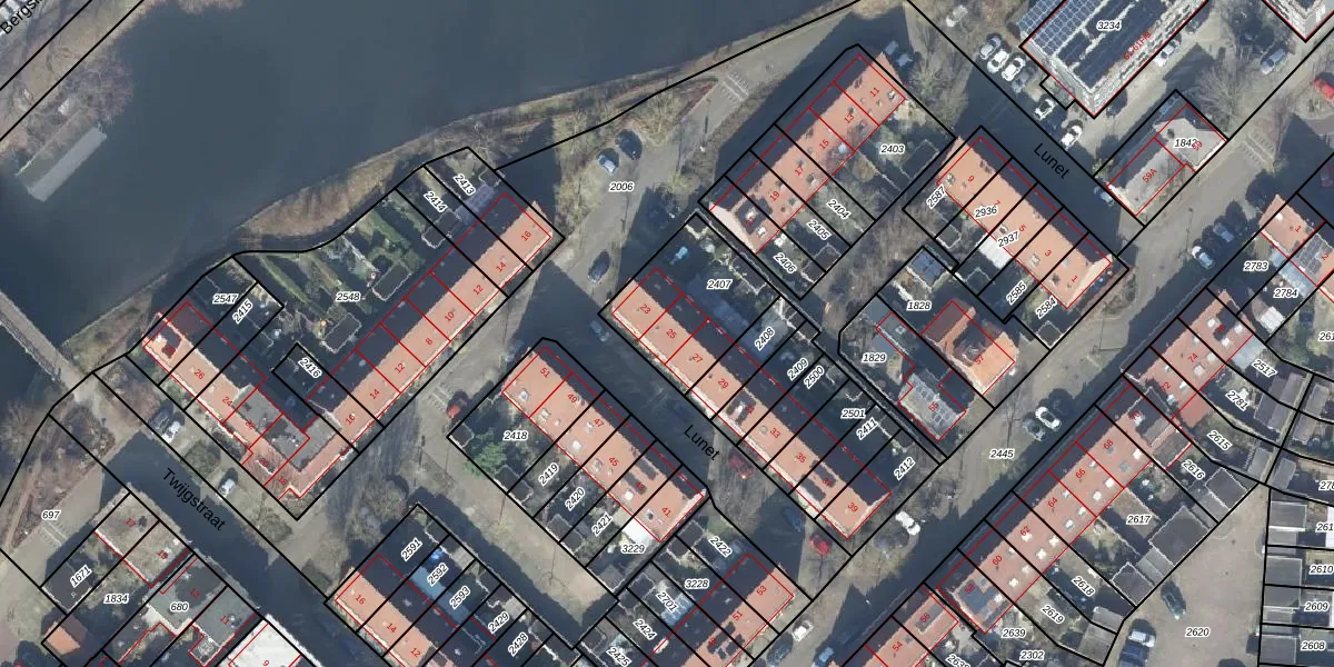 Het perceel waarop Lunet 25 staat heeft een oppervlakte van 370 m². Dit is een groot perceel. De perceeloppervlakte wordt geregistreerd door het Kadaster. Gedetailleerde informatie over de maten van dit perceel kunt u vinden in het rapport Kadastrale kaart met maatvoering van Lunet 25.