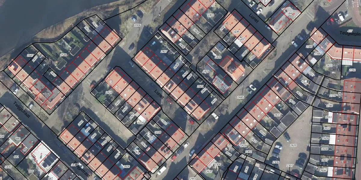 Gebruik de zoekbalk of klik op een perceel voor informatie over de adressen binnen dit perceel.