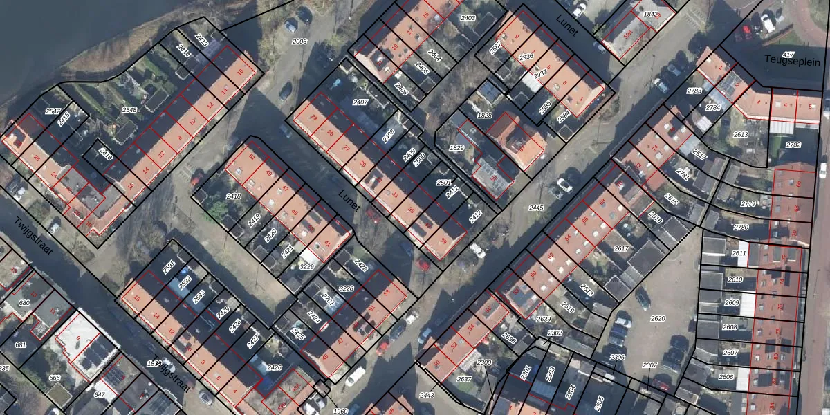 Gebruik de zoekbalk of klik op een perceel voor informatie over de adressen binnen dit perceel.