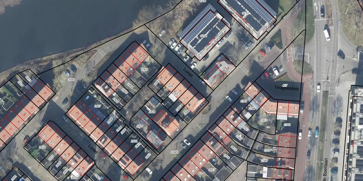Gebruik de zoekbalk of klik op een perceel voor informatie over de adressen binnen dit perceel.