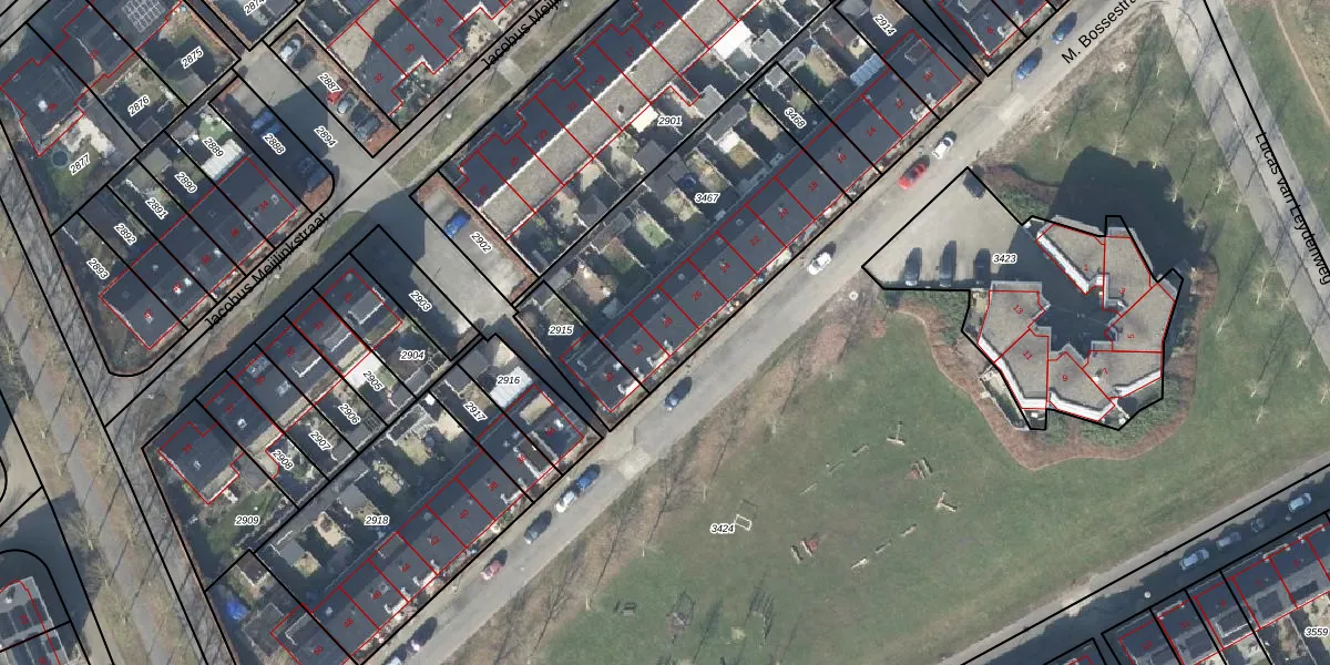 Het perceel waarop M. Bossestraat 28 staat heeft een oppervlakte van 1315 m². Dit is een zeer groot perceel. De perceeloppervlakte wordt geregistreerd door het Kadaster. Gedetailleerde informatie over de maten van dit perceel kunt u vinden in het rapport Kadastrale kaart met maatvoering van M. Bossestraat 28.