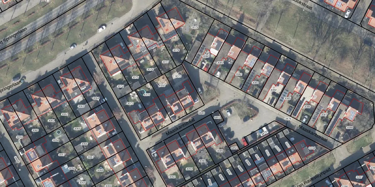 Gebruik de zoekbalk of klik op een perceel voor informatie over de adressen binnen dit perceel.