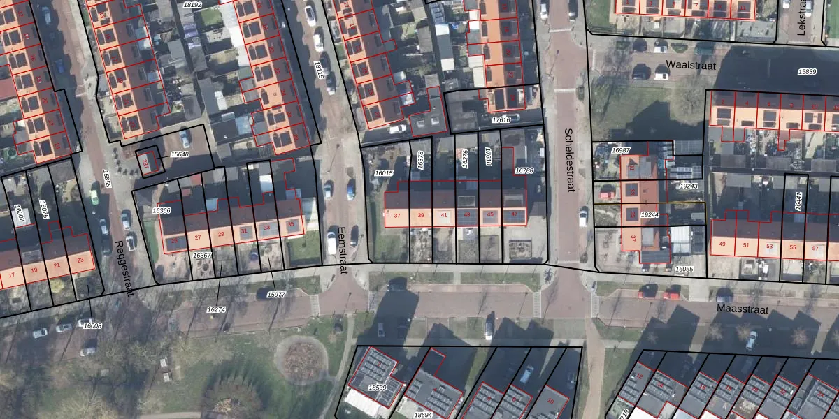 Gebruik de zoekbalk of klik op een perceel voor informatie over de adressen binnen dit perceel.