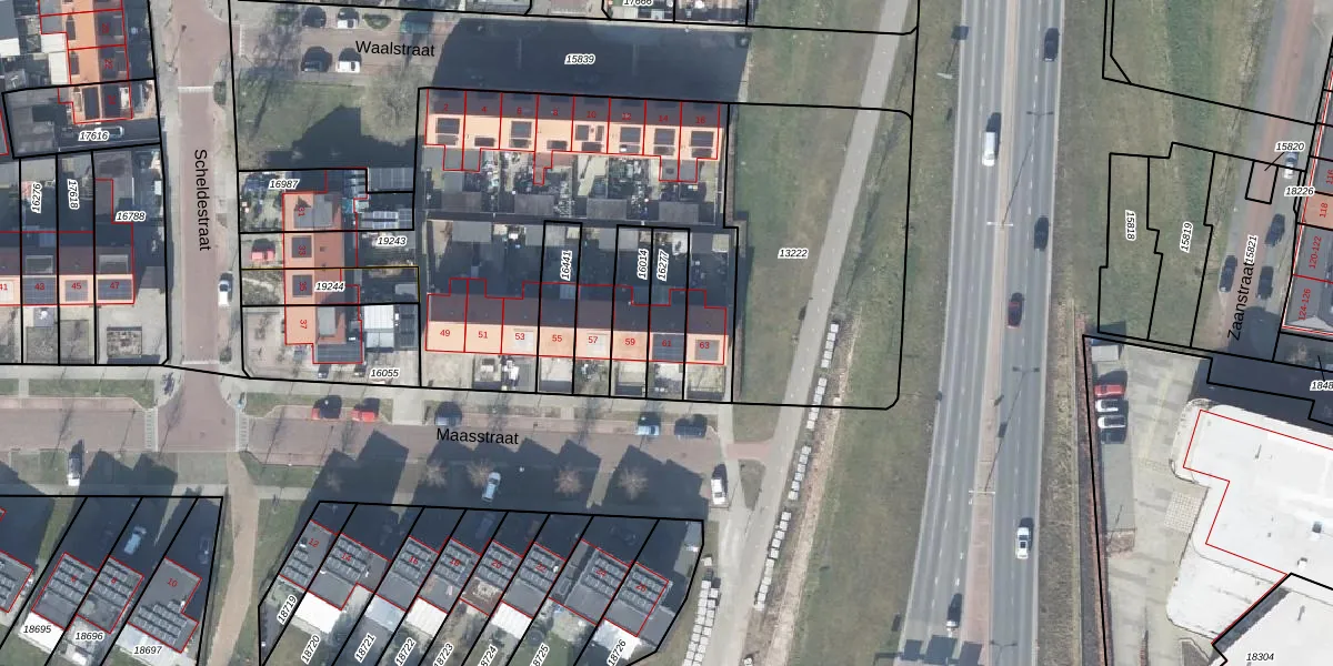 Maasstraat 61 is gelegen op kadastraal perceel DVT00B16277. Deze kadastrale aanduiding is uniek en wordt gebruikt door het Kadaster om eigendomsrechten en andere zakelijke rechten vast te leggen. Het perceel maakt onderdeel uit van de kadastrale gemeente Deventer.