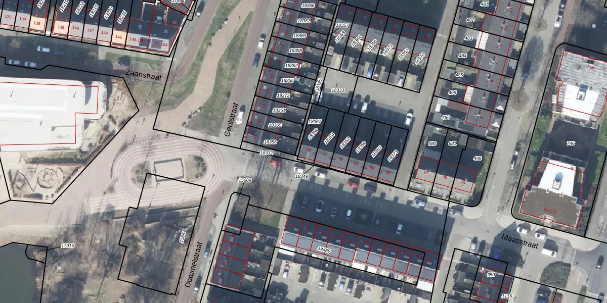 Gebruik de zoekbalk of klik op een perceel voor informatie over de adressen binnen dit perceel.