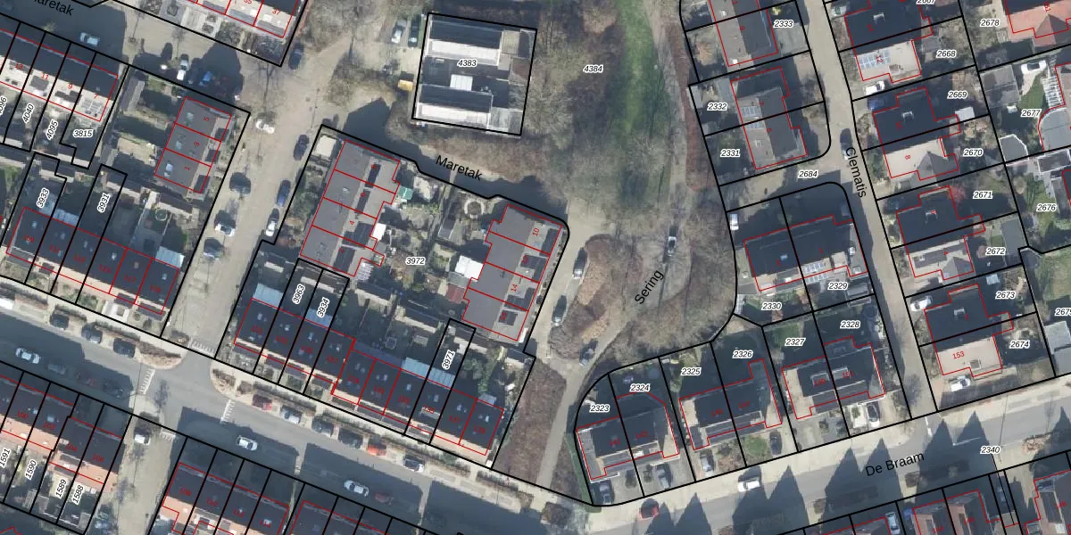 Het perceel waarop Maretak 12 staat heeft een oppervlakte van 2175 m². Dit is een zeer groot perceel. De perceeloppervlakte wordt geregistreerd door het Kadaster. Gedetailleerde informatie over de maten van dit perceel kunt u vinden in het rapport Kadastrale kaart met maatvoering van Maretak 12.