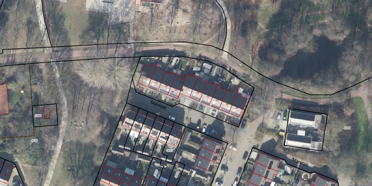 Het perceel waarop Maretak 27 staat heeft een oppervlakte van 1546 m². Dit is een zeer groot perceel. De perceeloppervlakte wordt geregistreerd door het Kadaster. Gedetailleerde informatie over de maten van dit perceel kunt u vinden in het rapport Kadastrale kaart met maatvoering van Maretak 27.