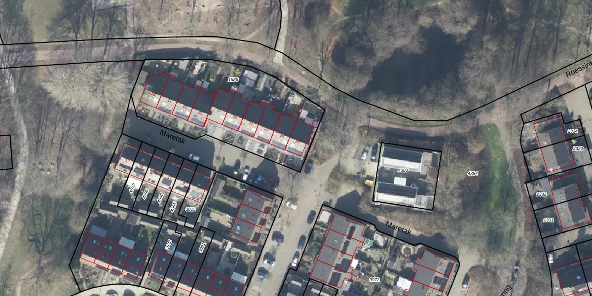 Het perceel waarop Maretak 37 staat heeft een oppervlakte van 1546 m². Dit is een zeer groot perceel. De perceeloppervlakte wordt geregistreerd door het Kadaster. Gedetailleerde informatie over de maten van dit perceel kunt u vinden in het rapport Kadastrale kaart met maatvoering van Maretak 37.