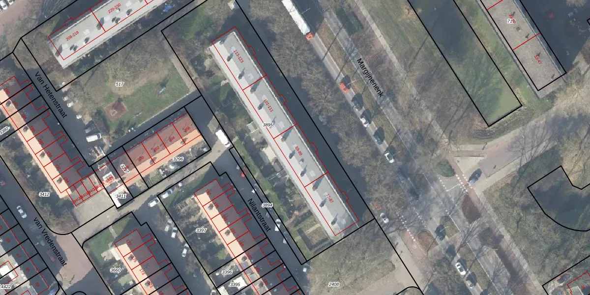 Margijnenenk 97 is gelegen op kadastraal perceel DVT00F3895. Deze kadastrale aanduiding is uniek en wordt gebruikt door het Kadaster om eigendomsrechten en andere zakelijke rechten vast te leggen. Het perceel maakt onderdeel uit van de kadastrale gemeente Deventer.