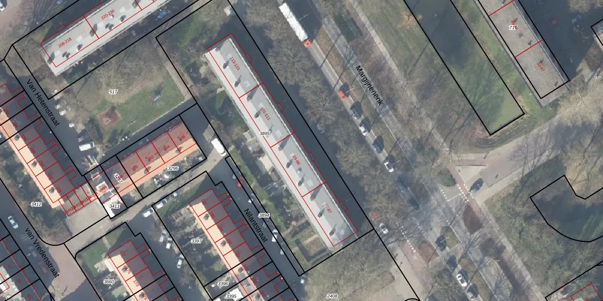 Margijnenenk 99 is gelegen op kadastraal perceel DVT00F3895. Deze kadastrale aanduiding is uniek en wordt gebruikt door het Kadaster om eigendomsrechten en andere zakelijke rechten vast te leggen. Het perceel maakt onderdeel uit van de kadastrale gemeente Deventer.