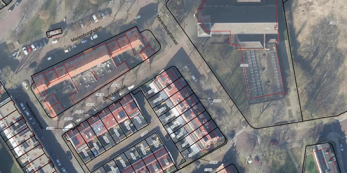 Marienburghstraat 55 is gelegen op kadastraal perceel DVT00B17503. Deze kadastrale aanduiding is uniek en wordt gebruikt door het Kadaster om eigendomsrechten en andere zakelijke rechten vast te leggen. Het perceel maakt onderdeel uit van de kadastrale gemeente Deventer.