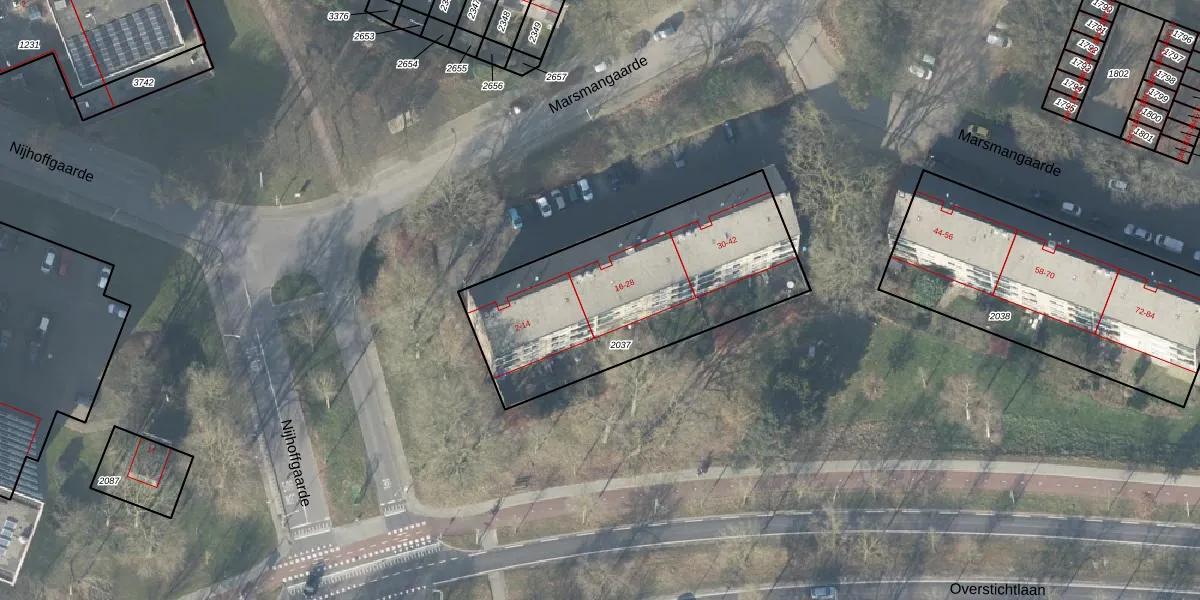 Het perceel waarop Marsmangaarde 20 staat heeft een oppervlakte van 1173 m². Dit is een zeer groot perceel. De perceeloppervlakte wordt geregistreerd door het Kadaster. Gedetailleerde informatie over de maten van dit perceel kunt u vinden in het rapport Kadastrale kaart met maatvoering van Marsmangaarde 20.
