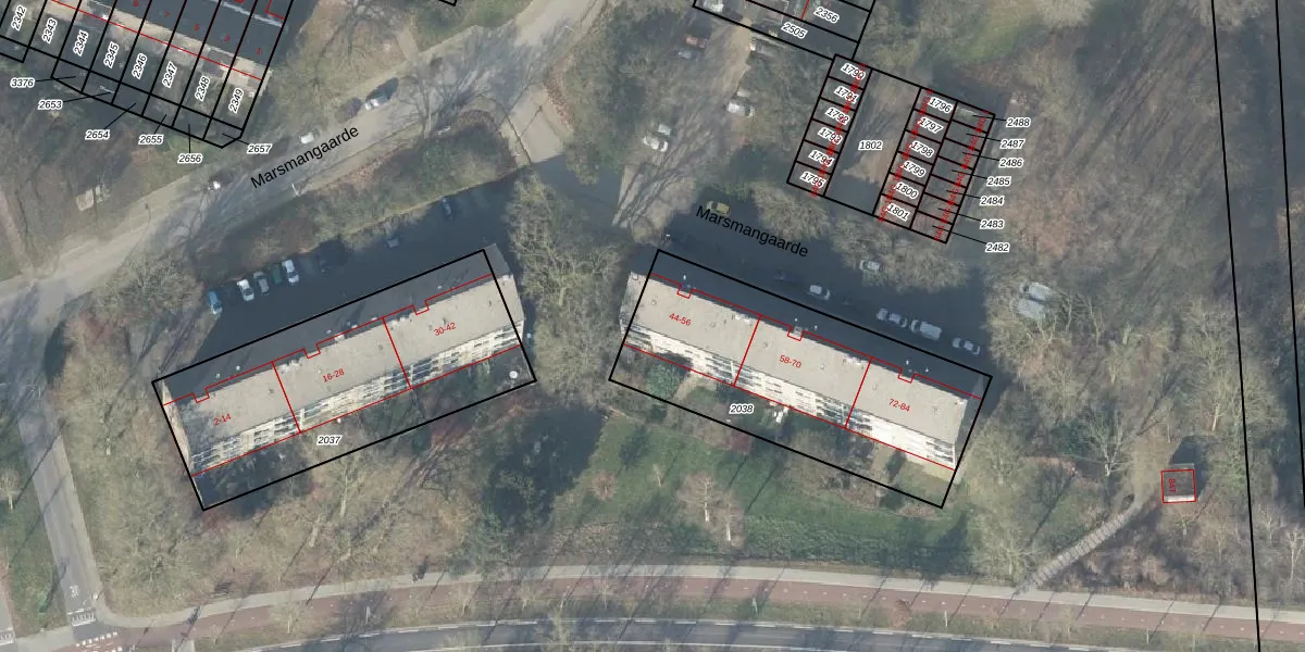 Het perceel waarop Marsmangaarde 50 staat heeft een oppervlakte van 1164 m². Dit is een zeer groot perceel. De perceeloppervlakte wordt geregistreerd door het Kadaster. Gedetailleerde informatie over de maten van dit perceel kunt u vinden in het rapport Kadastrale kaart met maatvoering van Marsmangaarde 50.