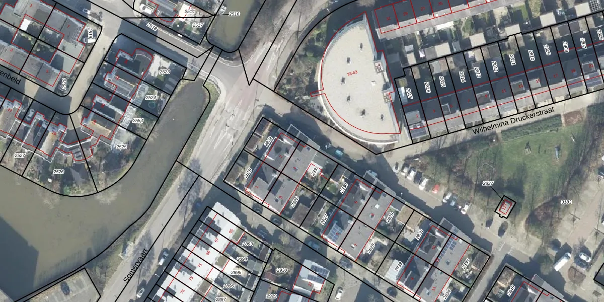 Gebruik de zoekbalk of klik op een perceel voor informatie over de adressen binnen dit perceel.