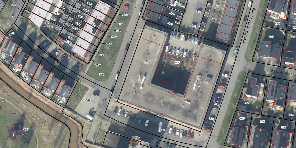 Het perceel waarop M.C. Escherweg 2-F-2 staat heeft een oppervlakte van 3490 m². Dit is een zeer groot perceel. De perceeloppervlakte wordt geregistreerd door het Kadaster. Gedetailleerde informatie over de maten van dit perceel kunt u vinden in het rapport Kadastrale kaart met maatvoering van M.C. Escherweg 2-F-2.