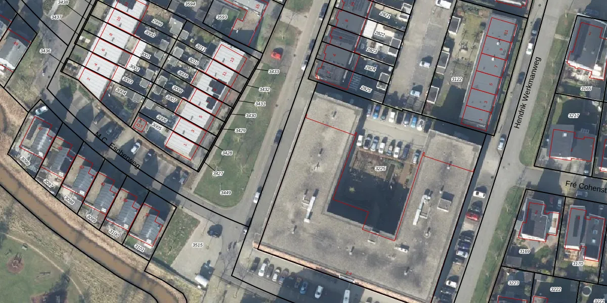 Het perceel waarop M.C. Escherweg 2-F-9 staat heeft een oppervlakte van 3490 m². Dit is een zeer groot perceel. De perceeloppervlakte wordt geregistreerd door het Kadaster. Gedetailleerde informatie over de maten van dit perceel kunt u vinden in het rapport Kadastrale kaart met maatvoering van M.C. Escherweg 2-F-9.