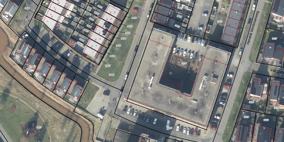 Het perceel waarop M.C. Escherweg 2-F-11 staat heeft een oppervlakte van 3490 m². Dit is een zeer groot perceel. De perceeloppervlakte wordt geregistreerd door het Kadaster. Gedetailleerde informatie over de maten van dit perceel kunt u vinden in het rapport Kadastrale kaart met maatvoering van M.C. Escherweg 2-F-11.