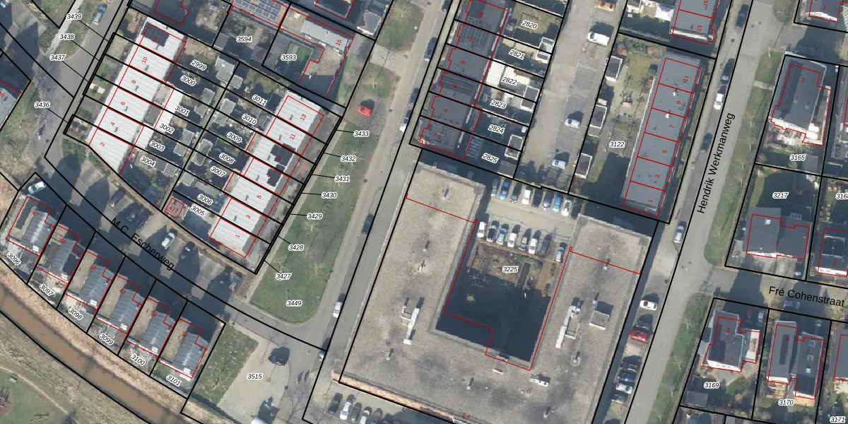 Het perceel waarop M.C. Escherweg 2-F-38 staat heeft een oppervlakte van 3490 m². Dit is een zeer groot perceel. De perceeloppervlakte wordt geregistreerd door het Kadaster. Gedetailleerde informatie over de maten van dit perceel kunt u vinden in het rapport Kadastrale kaart met maatvoering van M.C. Escherweg 2-F-38.