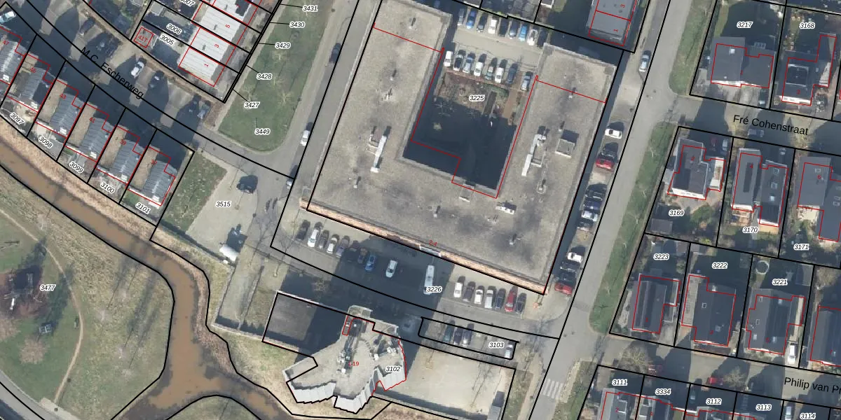 Het perceel waarop M.C. Escherweg 2-F-46 staat heeft een oppervlakte van 3490 m². Dit is een zeer groot perceel. De perceeloppervlakte wordt geregistreerd door het Kadaster. Gedetailleerde informatie over de maten van dit perceel kunt u vinden in het rapport Kadastrale kaart met maatvoering van M.C. Escherweg 2-F-46.