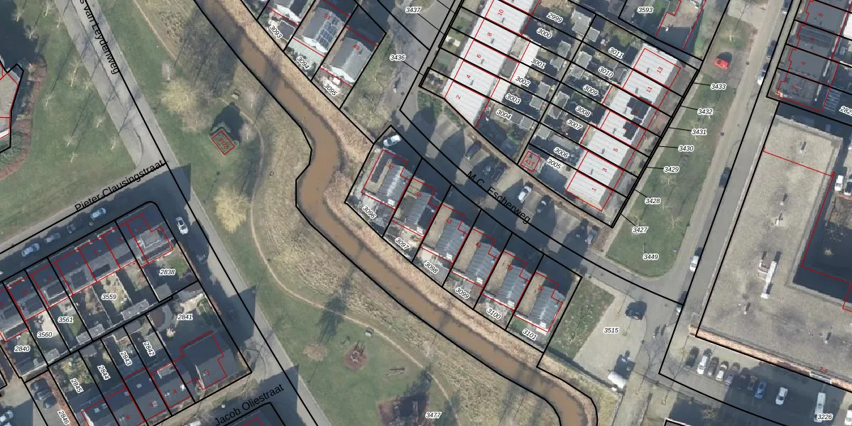 Gebruik de zoekbalk of klik op een perceel voor informatie over de adressen binnen dit perceel.