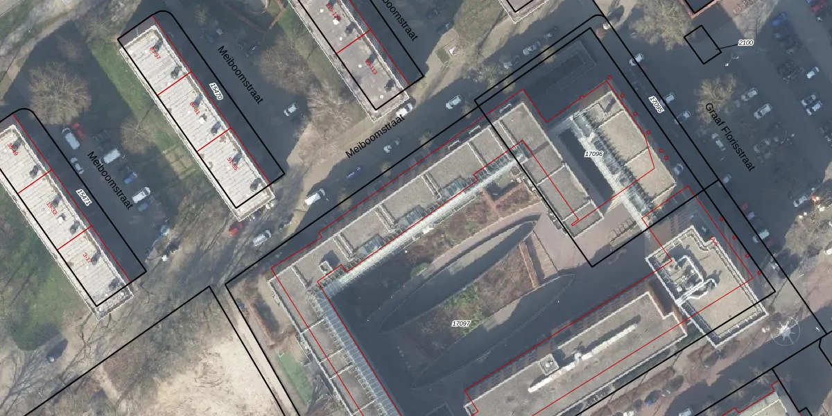 Het perceel waarop Meiboomstraat 24 staat heeft een oppervlakte van 6678 m². Dit is een zeer groot perceel. De perceeloppervlakte wordt geregistreerd door het Kadaster. Gedetailleerde informatie over de maten van dit perceel kunt u vinden in het rapport Kadastrale kaart met maatvoering van Meiboomstraat 24.