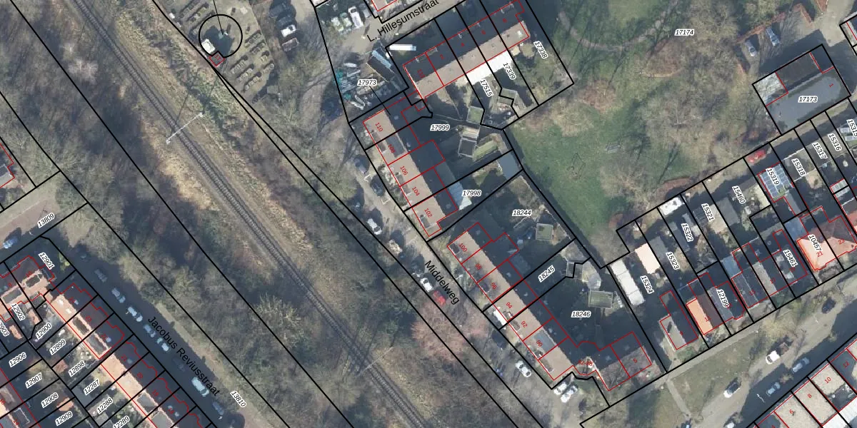 Het perceel waarop Middelweg 102 staat heeft een oppervlakte van 215 m². Dit is een middelgroot perceel. De perceeloppervlakte wordt geregistreerd door het Kadaster. Gedetailleerde informatie over de maten van dit perceel kunt u vinden in het rapport Kadastrale kaart met maatvoering van Middelweg 102.