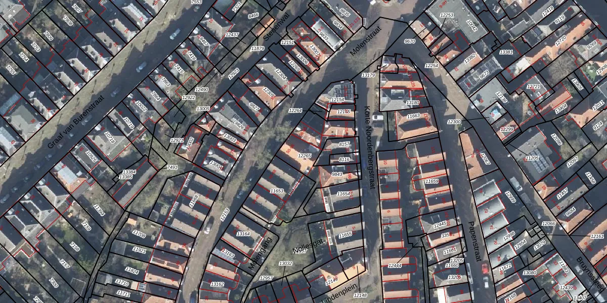 Het perceel waarop Molenstraat 56 staat heeft een oppervlakte van 385 m². Dit is een groot perceel. De perceeloppervlakte wordt geregistreerd door het Kadaster. Gedetailleerde informatie over de maten van dit perceel kunt u vinden in het rapport Kadastrale kaart met maatvoering van Molenstraat 56.