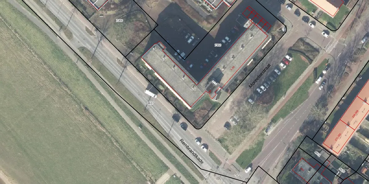 Het perceel waarop Moreelsestraat 2 staat heeft een oppervlakte van 2827 m². Dit is een zeer groot perceel. De perceeloppervlakte wordt geregistreerd door het Kadaster. Gedetailleerde informatie over de maten van dit perceel kunt u vinden in het rapport Kadastrale kaart met maatvoering van Moreelsestraat 2.
